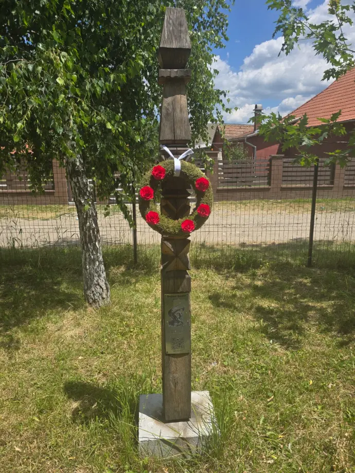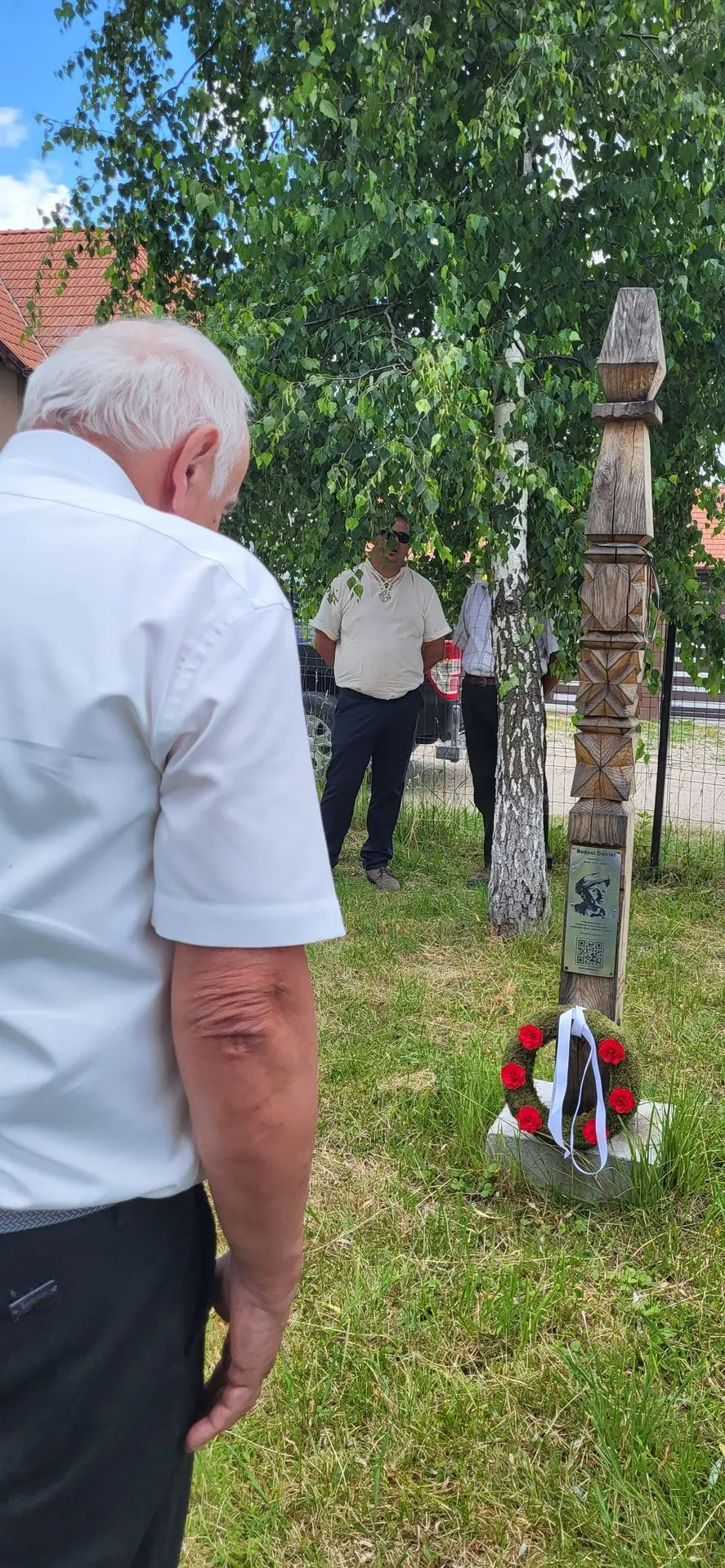 (Tiszteletadás a festőművész, Bodosi Dániel kopjafájánál.)